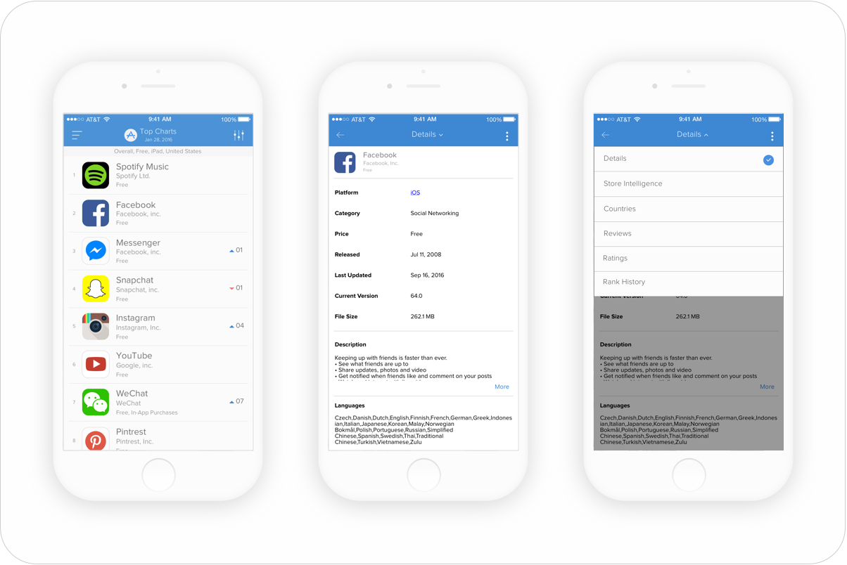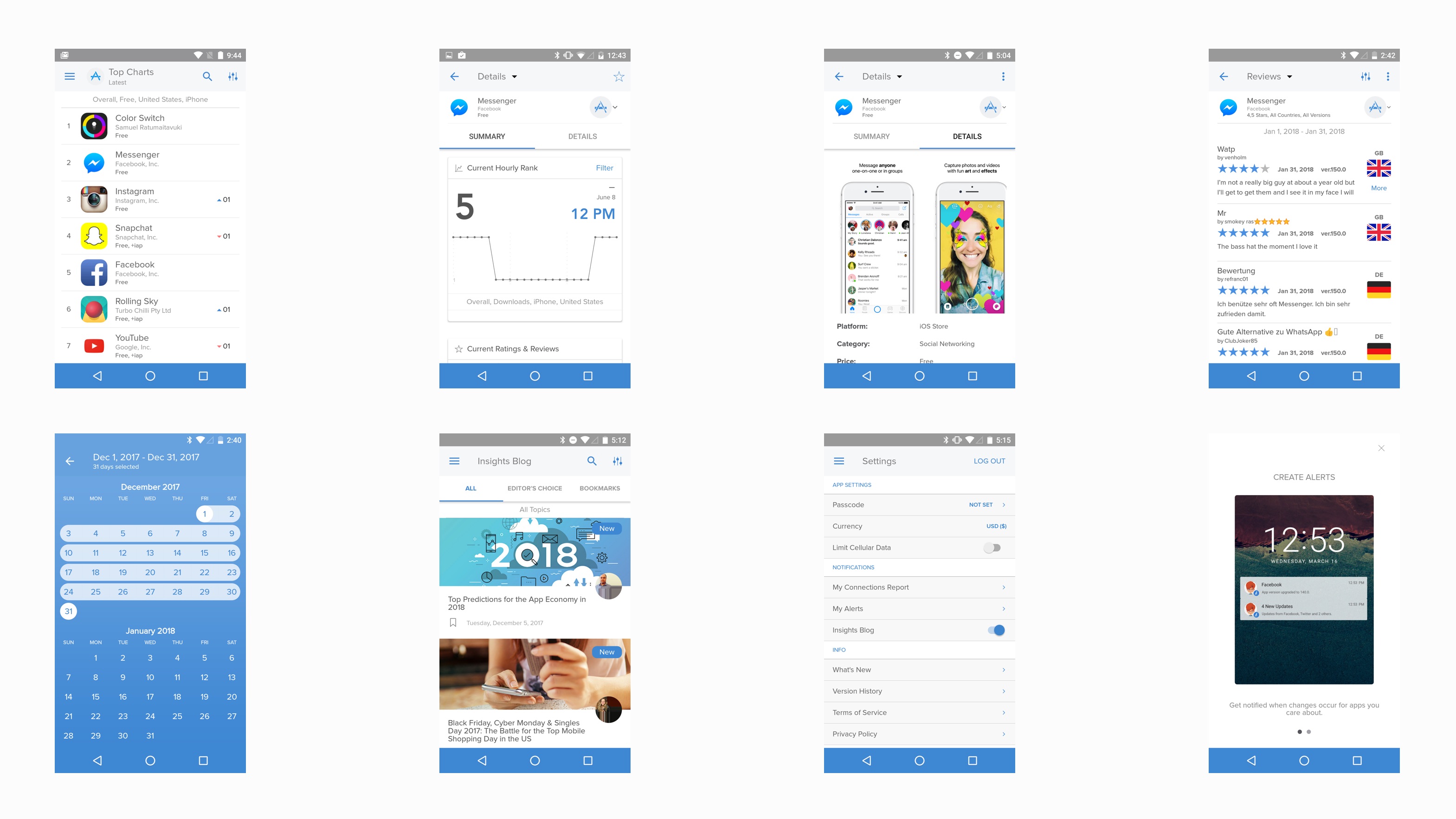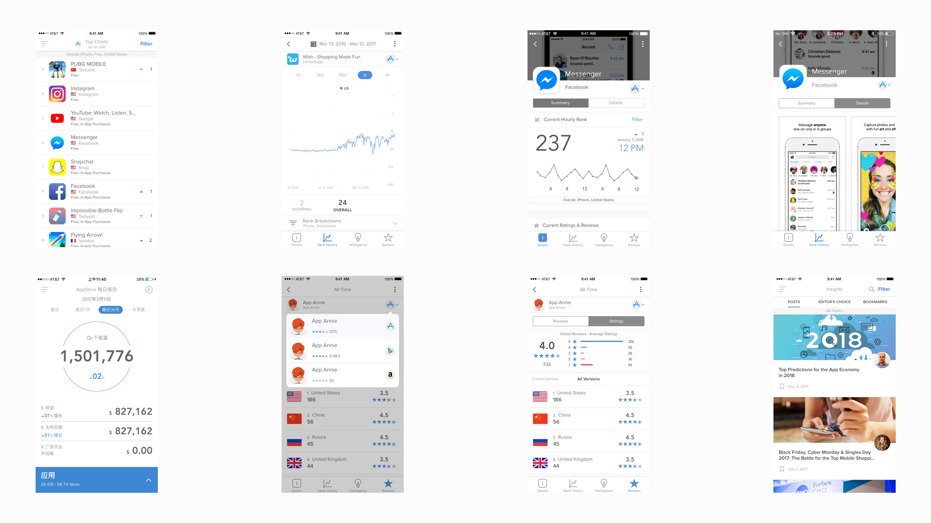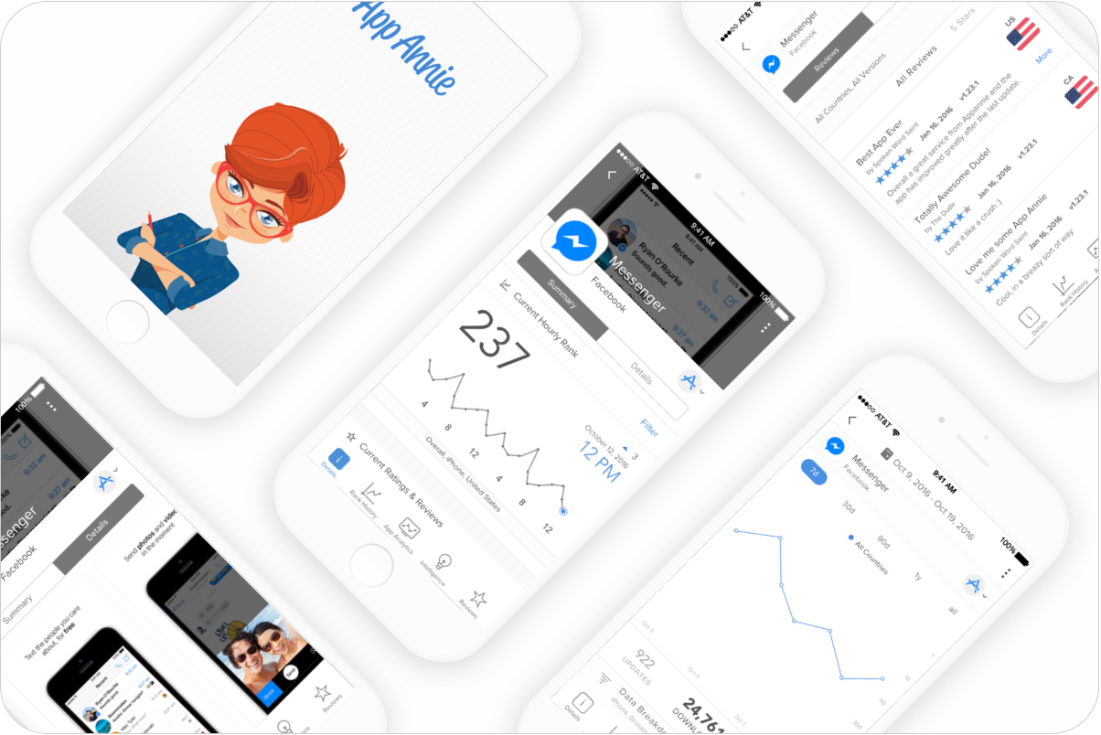 Making decisions on your app business is more comfortable when you have the data to back it up. From downloads and revenue, to reviews and ratings, App Annie is a streamlined and lightweight solution to access your app’s publisher data, your competitive data (App Annie Intelligence) and general market performance for over 7 million apps.